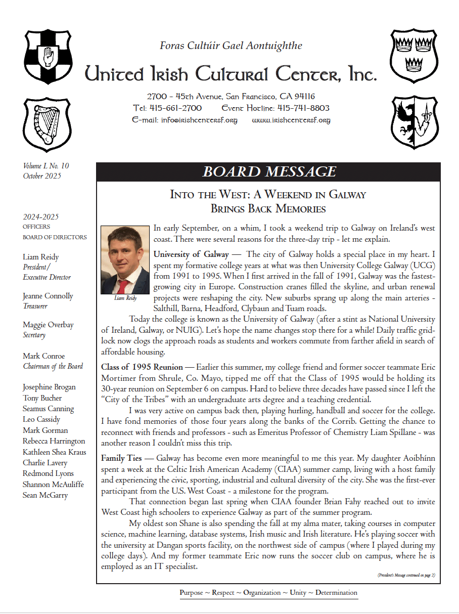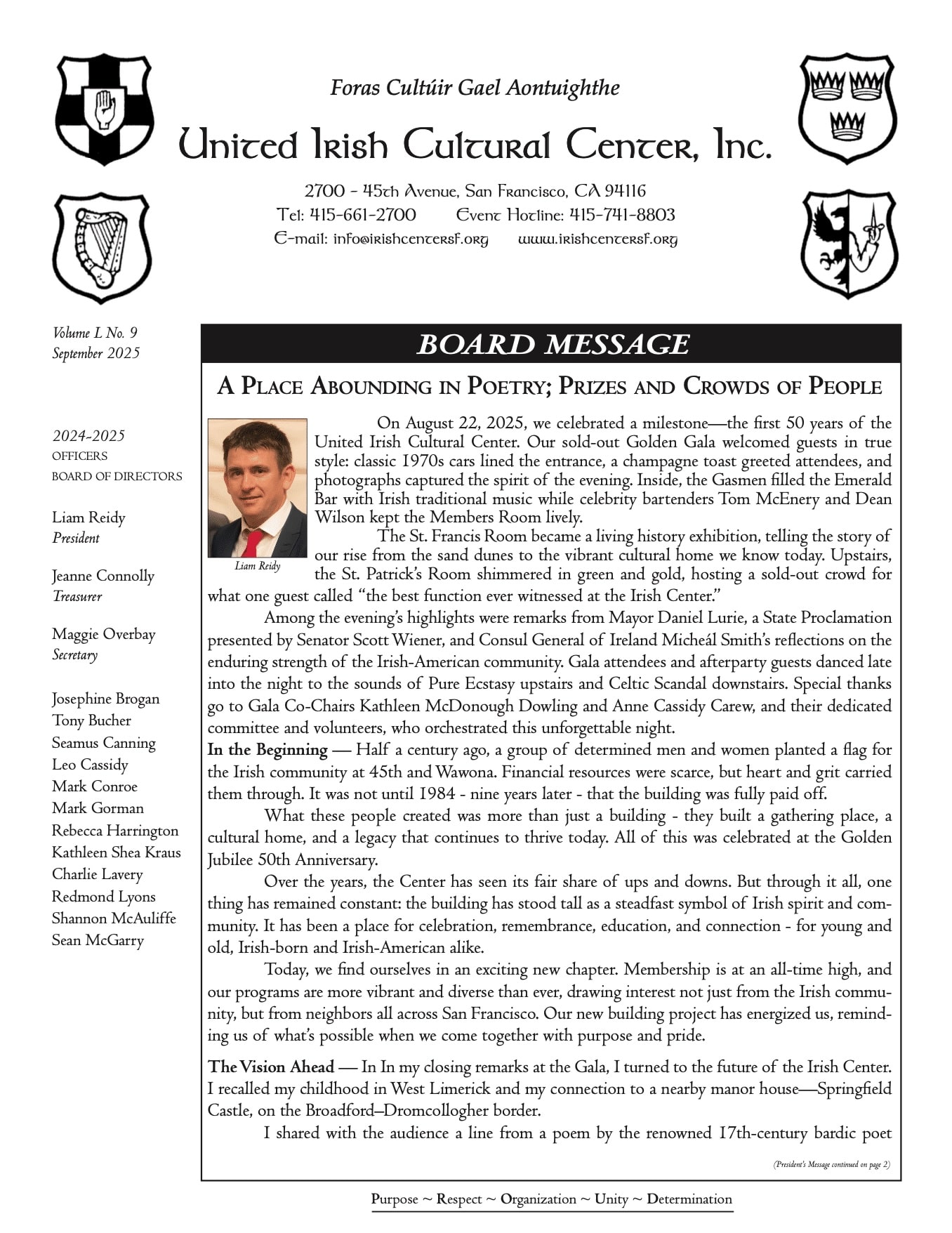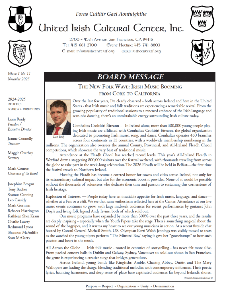 Monthly publication for members and more. Get a glimpse into what’s going on and coming up at the Irish Center.